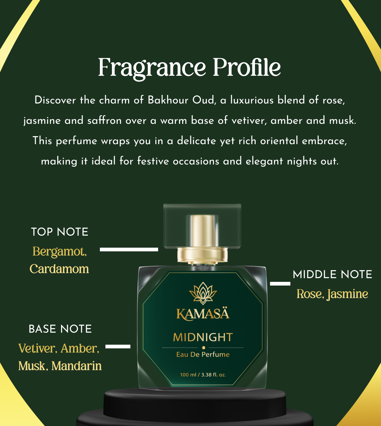 Free shipping on orders over $50. Standard delivery takes 3-5 business days.Discover the charm of Bakhour Oud — a luxurious blend of rose, jasmine, and saffron over a warm base of vetiver, amber, and musk. This perfume wraps you in a delicate yet rich oriental embrace, making it ideal for festive occasions and elegant nights out.