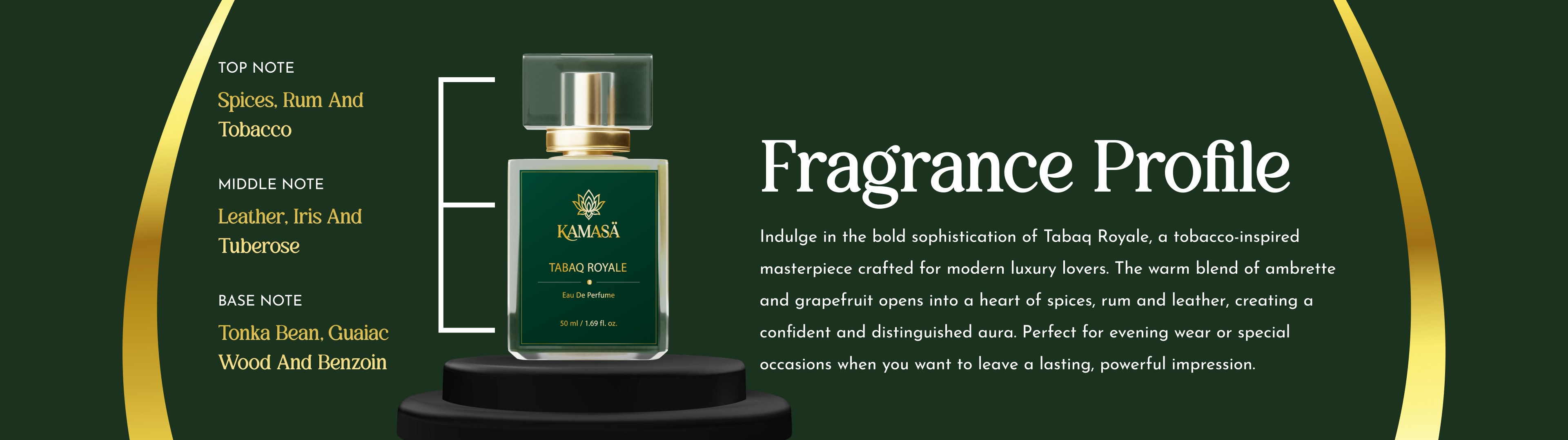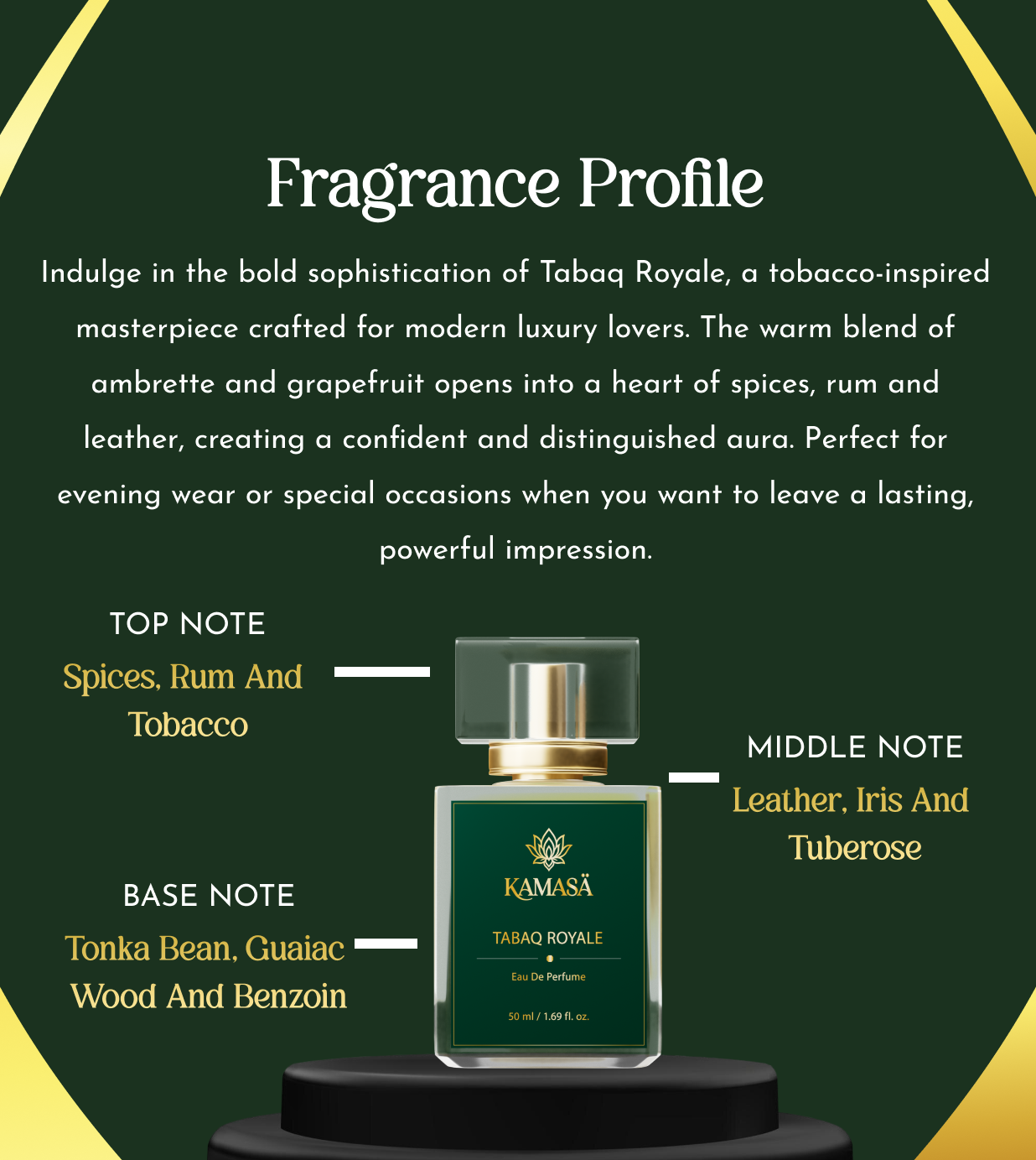 • Spicy heart with rum and leather undertones.